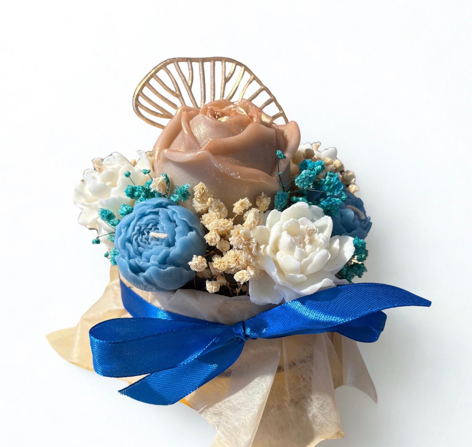 Bouquet de bougies Bleu, Blanc & Doré