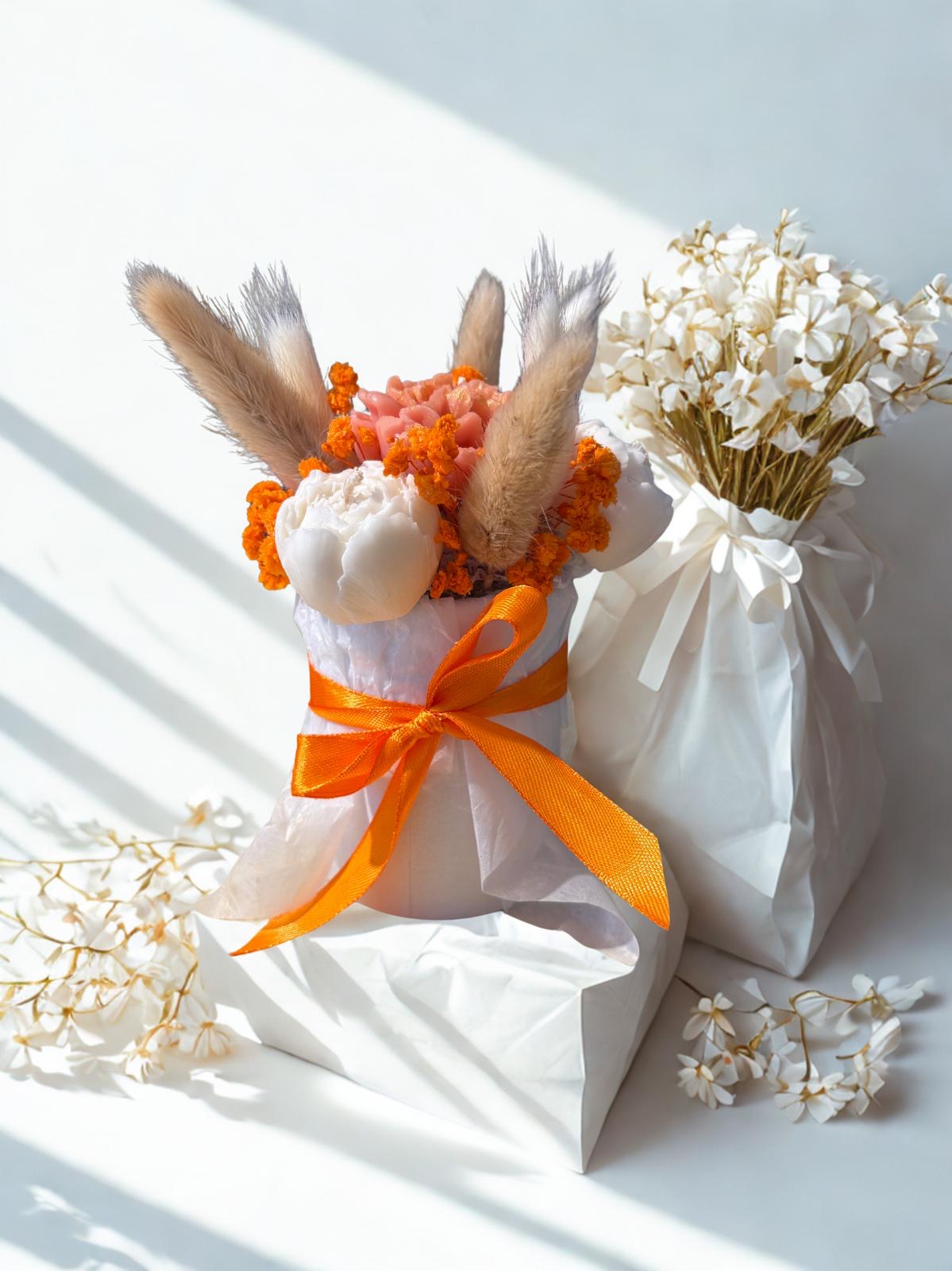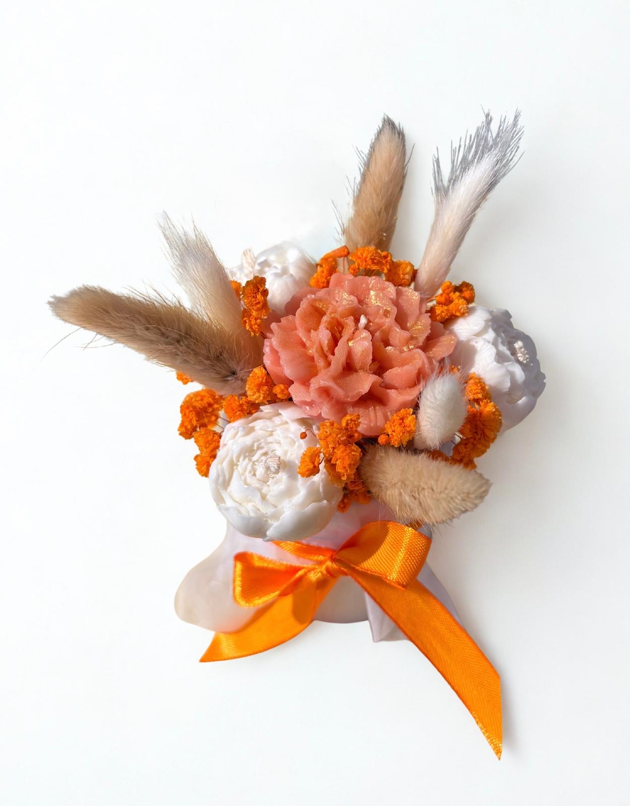 Apportez élégance et parfum a votre intérieur avec ce bouquet comportant 4 bougies artisanal. chaque fleur d’œillet et pivoines sont minutieusement façonnée à la cire d’abeille et dégage une douce odeur de mille fleurs sauvages. Dans de jolies teintes orange et blanc, ce bouquet et présenté dans une élégante boîte blanche de 6 cm de diamètre, idéal pour offrir ou sublimer votre décoration.